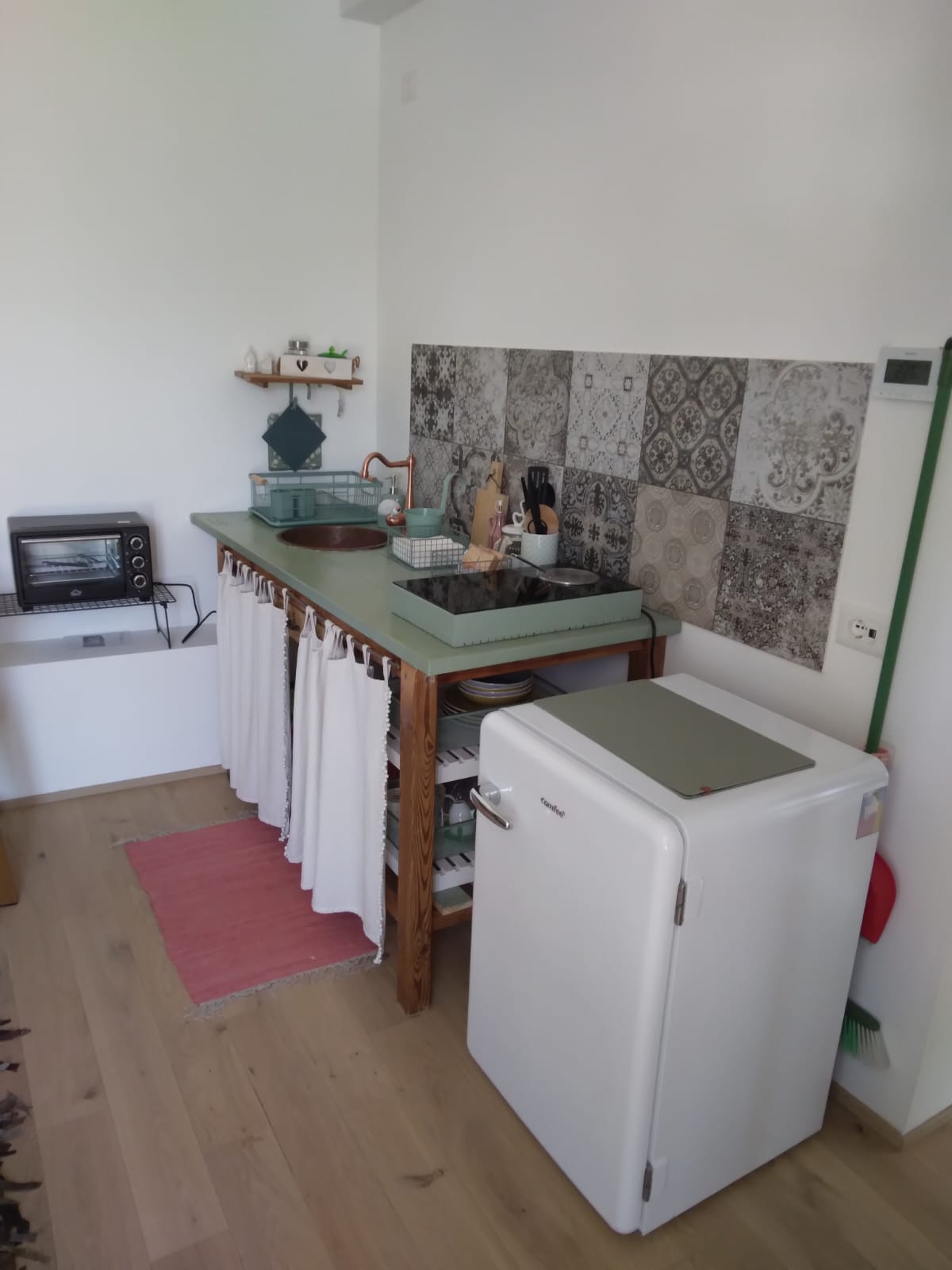 Bilocale soppalcato dotato di un letto matrimniale, un bagno con doccia, una cucina con angolo cottura e frigorifero, 2 poltrone con t.v.